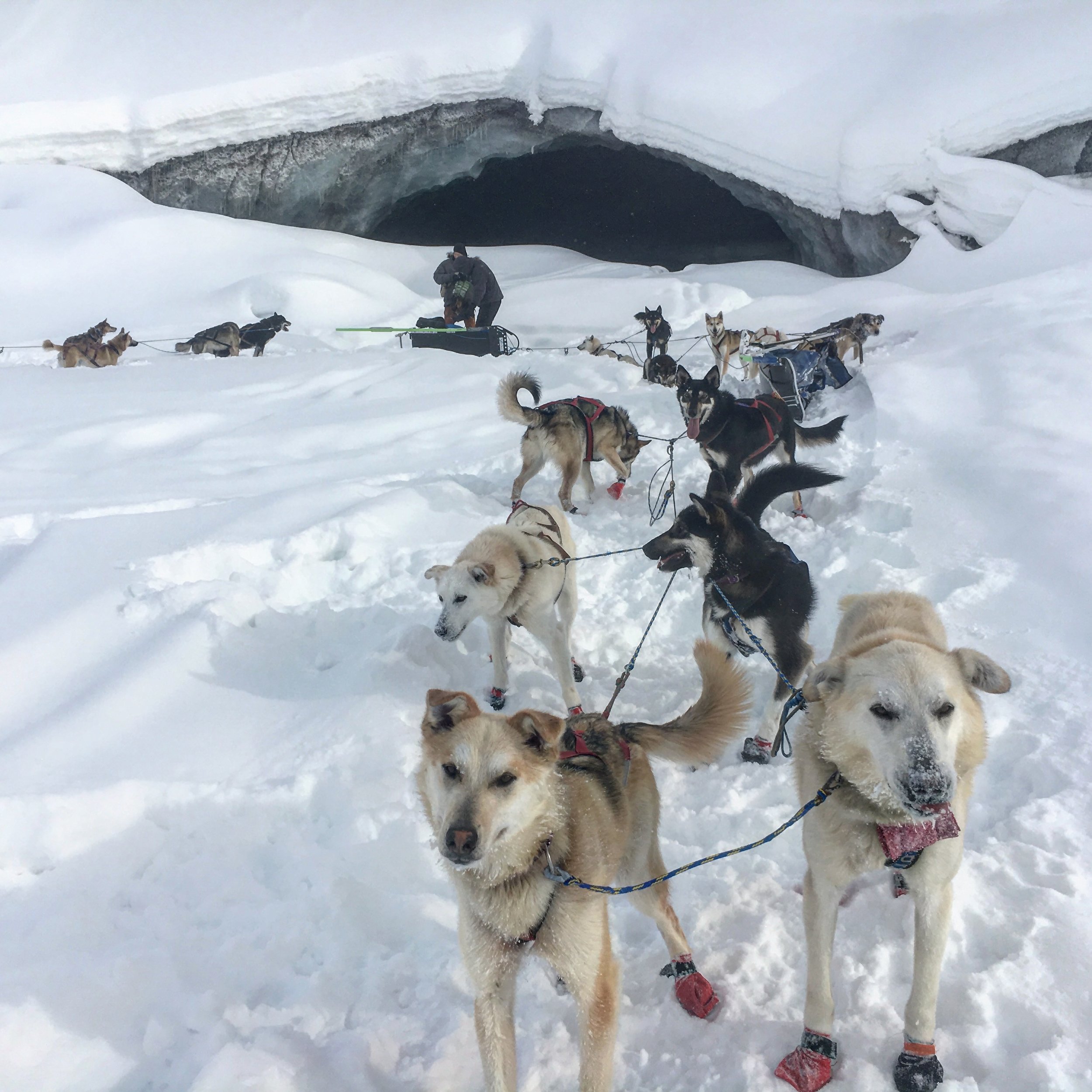We mushed 15 miles in and stayed in an arctic oven tent. Then we mushed another 25 miles to Maclaren River Lodge. We stayed there for two nights, spending one day mushing up to the Maclaren Glacier Ice Cave. We had such a blast with our guests, Kibba and Peter, and love using these trips as a way to top off a season!
